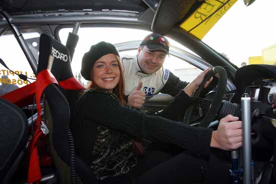 nicht nur vom Auto herunter, sondern auch vor demselben, die motorsportbegeisterte